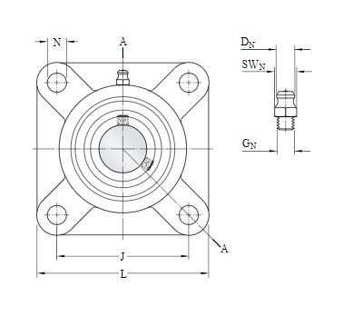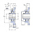 Расстояние между центрами установочных отверстий подушек, e: 64 мм
